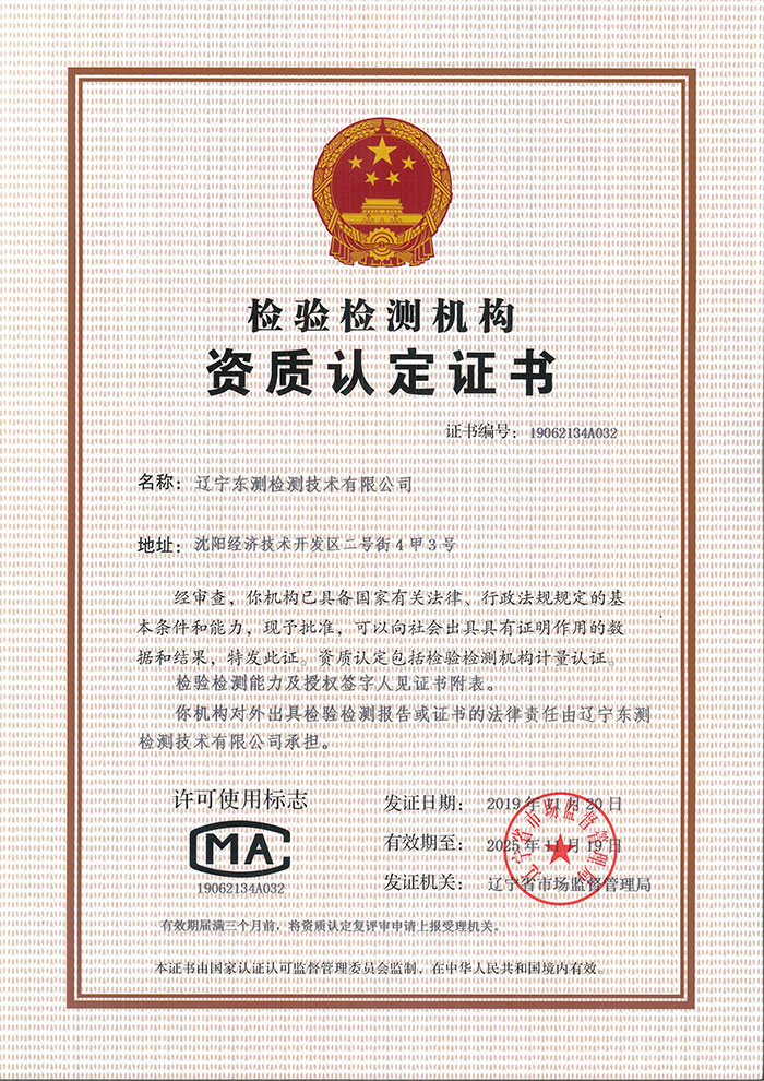 遼寧東測檢測技術(shù)有限公司成立于2007年6月21日,專注于為客戶提供計(jì)量、檢測以及技術(shù)咨詢與培訓(xùn)的第三方計(jì)量檢測機(jī)構(gòu)。遼寧東測檢測技術(shù)有限公司通過了中國合格評(píng)定國家認(rèn)可委員會(huì)認(rèn)可(CNAS),獲得檢驗(yàn)檢測機(jī)構(gòu)資質(zhì)認(rèn)定(CMA),憑借著高效的服務(wù)網(wǎng)絡(luò)、雄厚的技術(shù)實(shí)力以及全面的業(yè)務(wù)范圍,本著“科學(xué)、公正、準(zhǔn)確、真誠”的質(zhì)量方針,為社會(huì)提供優(yōu)質(zhì)計(jì)量檢測服務(wù),打造國內(nèi)具有價(jià)值的計(jì)量技術(shù)機(jī)構(gòu)。